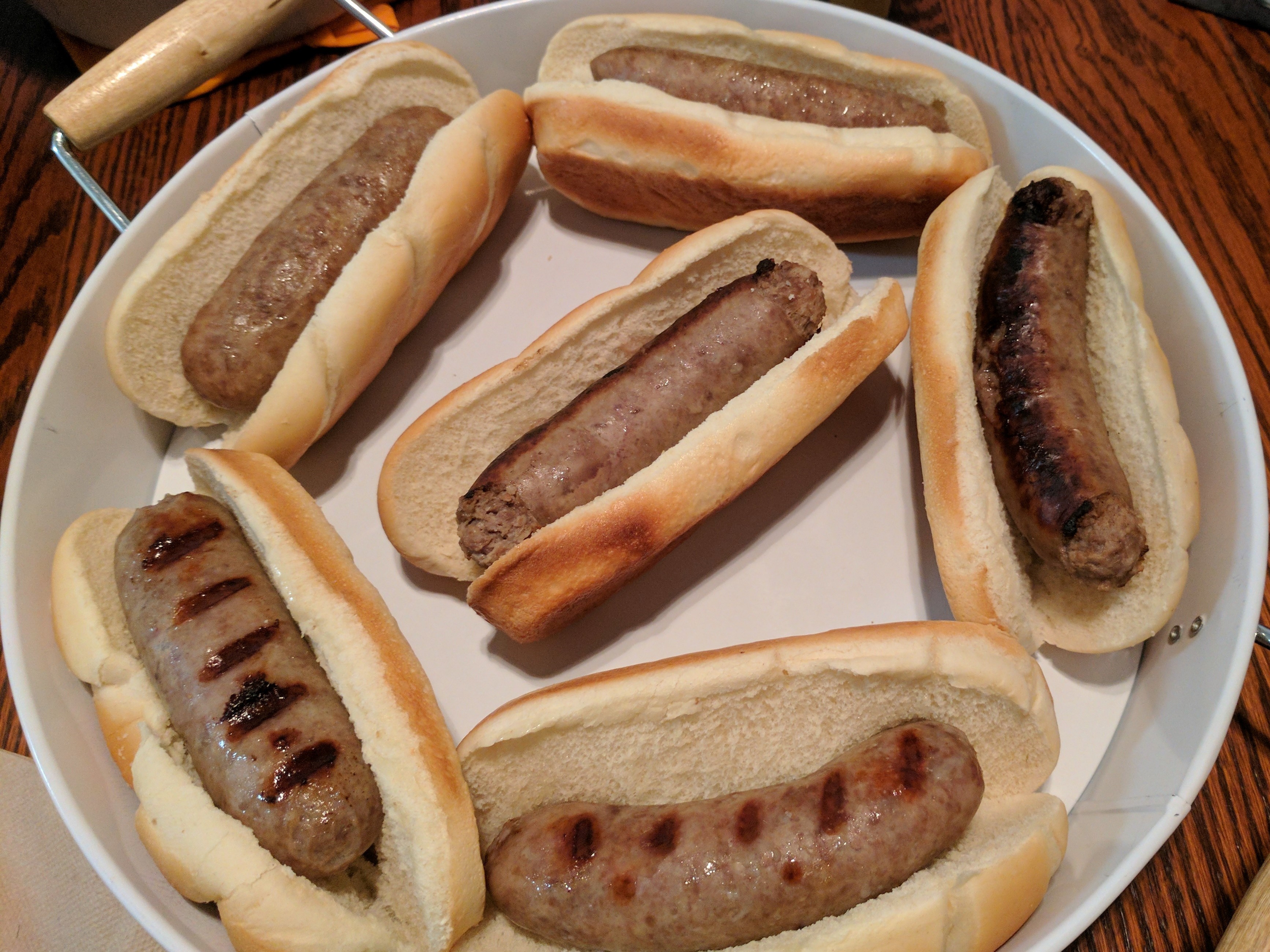 Cooking Method - The pan seared brats were undercooked. Part of me wonders if the boiling should have happened before the searing. We tried to put them on the grill to finish up the cooking, but that didn't work. The crock-pot brats also were initially undercooked, but we redeemed them by grilling them for a few minutes. The boiled and grilled brats had the perfect cook with lovely grill marks. They didn't need a second time through the grill.